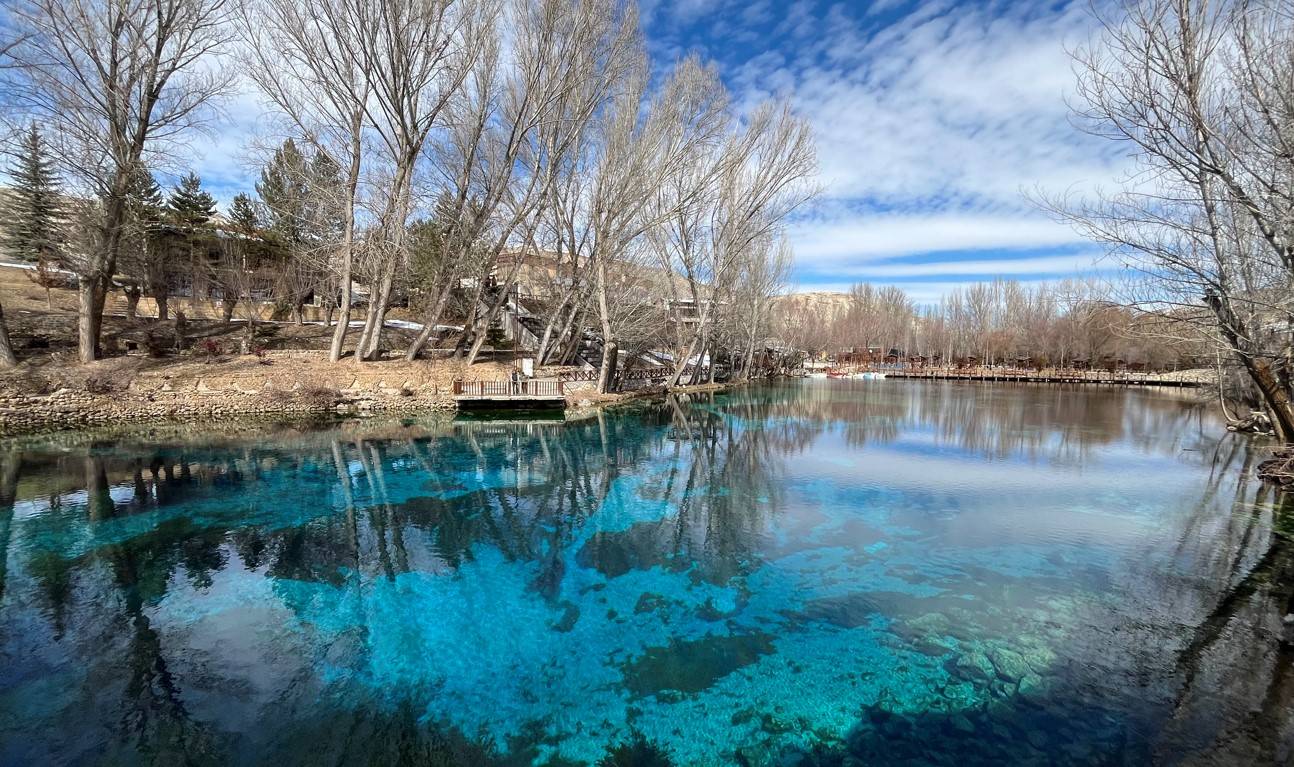 Gökpınar Lake is a popular destination for divers and underwater photographers and is also referred to as the “Evil Eye Bead of the Steppe” due to its unique color. Regardless of the season, the lake maintains a constant temperature of 11°C. In winter, when the surrounding landscape is covered with snow, it transforms into a steaming pool within a white blanket, creating a striking natural spectacle.